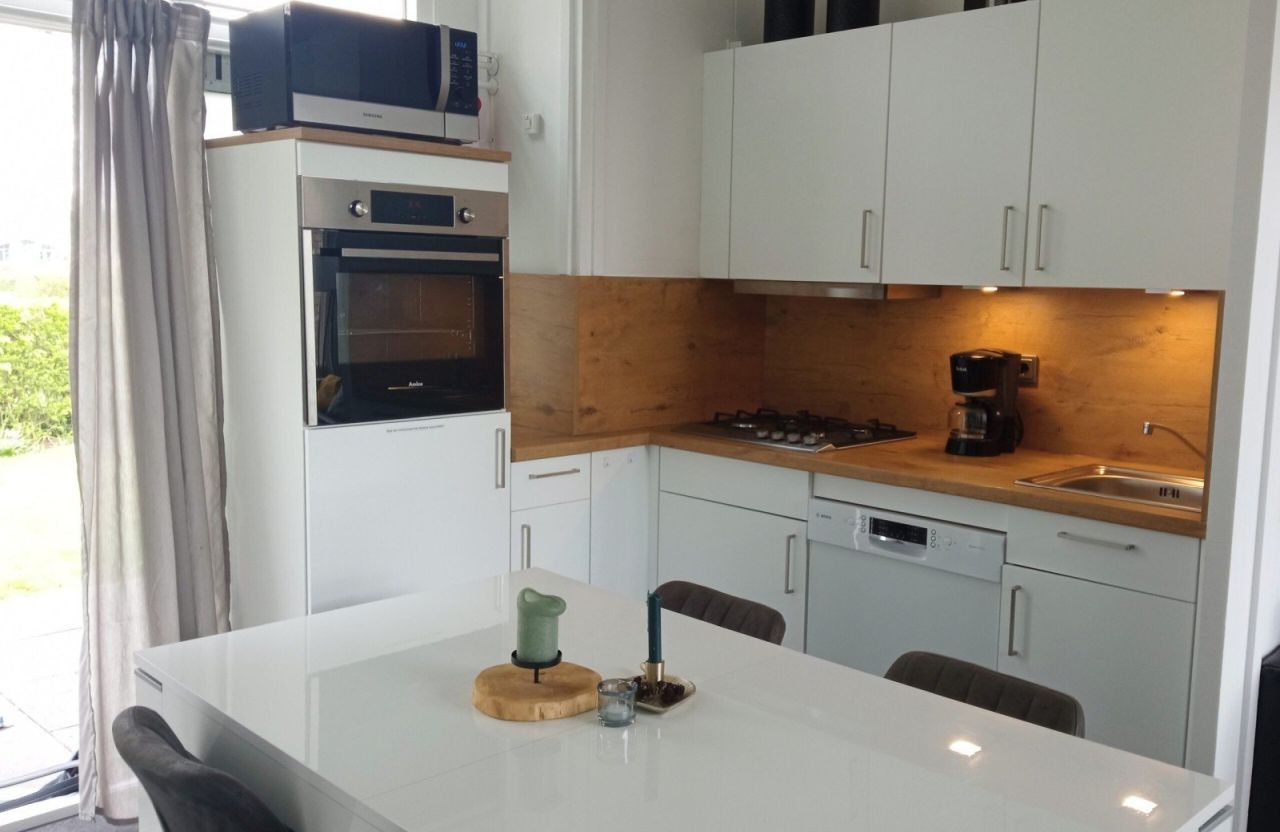 • Vanuit de keuken en eethoek kijk je uit op de betoverende IJsselmeerdijk – een uitzicht dat nooit verveelt.