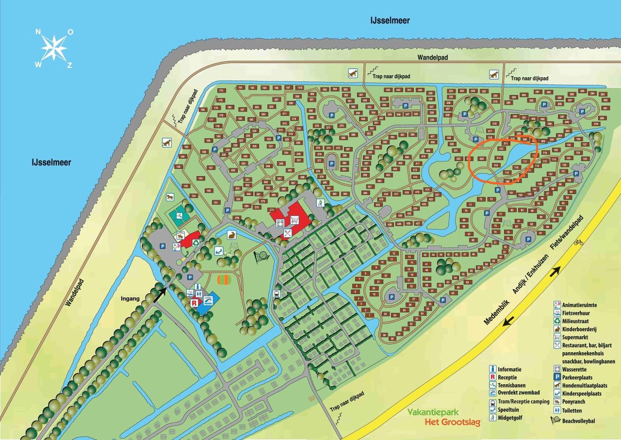Een ander bijzonder voordeel van dit park is, dat het direct aan het IJsselmeer ligt en dicht bij de oudhollandse steden Enkhuizen, Medemblik, Hoorn en Alkmaar. Cultuur, restaurants, terrasjes aan de havens en uitgebreide winkelmogelijkheden zijn binnen handbereik. U kunt ook in slechts 45 minuten naar het Noordzeestrand of Amsterdam rijden.