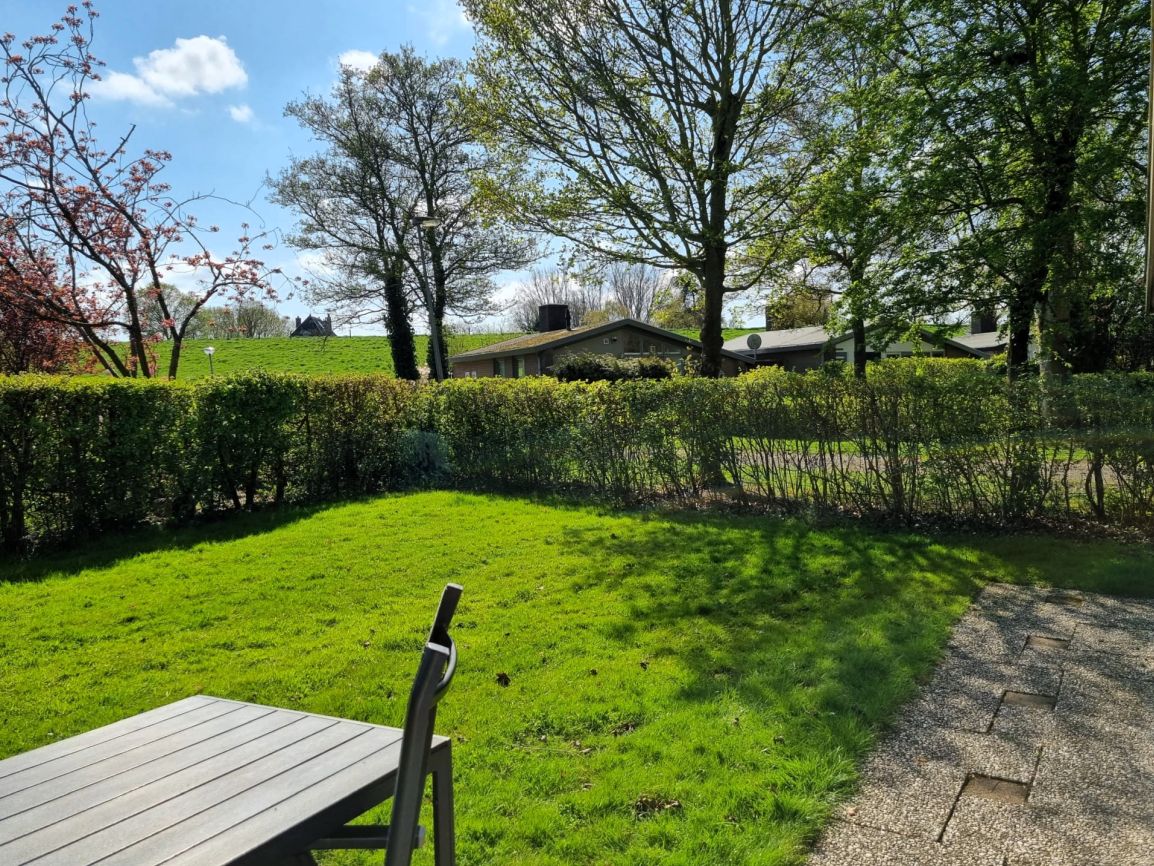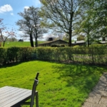 De ruime tuin biedt veel privacy, rust en aangename schaduwplekken. Aan de achterzijde geniet u van vrij uitzicht op de dijk en het omliggende landschap, terwijl de voortuin grenst aan een groenvoorziening en een rustige straat.