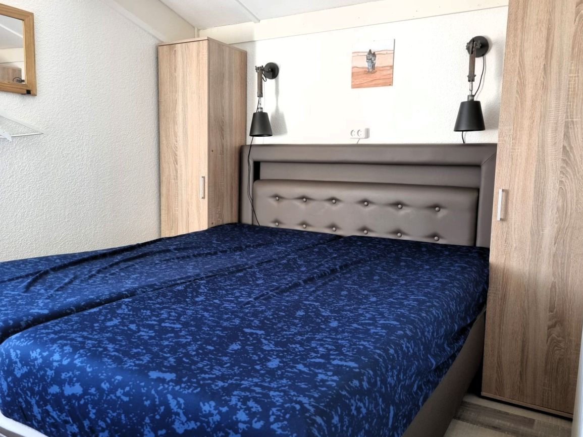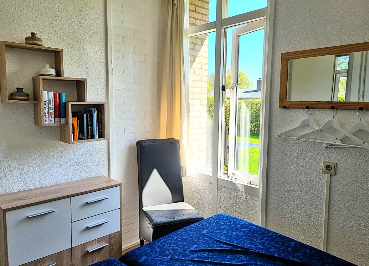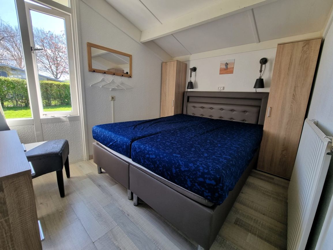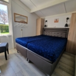 De bungalow beschikt over twee comfortabele slaapkamers. De hoofdslaapkamer is ingericht met een luxe tweepersoons boxspringbedden en ruime opbergmogelijkheden. De tweede slaapkamer wordt momenteel gebruikt als kleed- en bergruimte, maar kan eenvoudig worden omgebouwd tot een extra slaapkamer voor maximaal twee personen, bijvoorbeeld met een halfhoog bed in combinatie met een eenpersoonsbed, een passend tweepersoonsbed of een slaapbank met kast en/of ladekast.